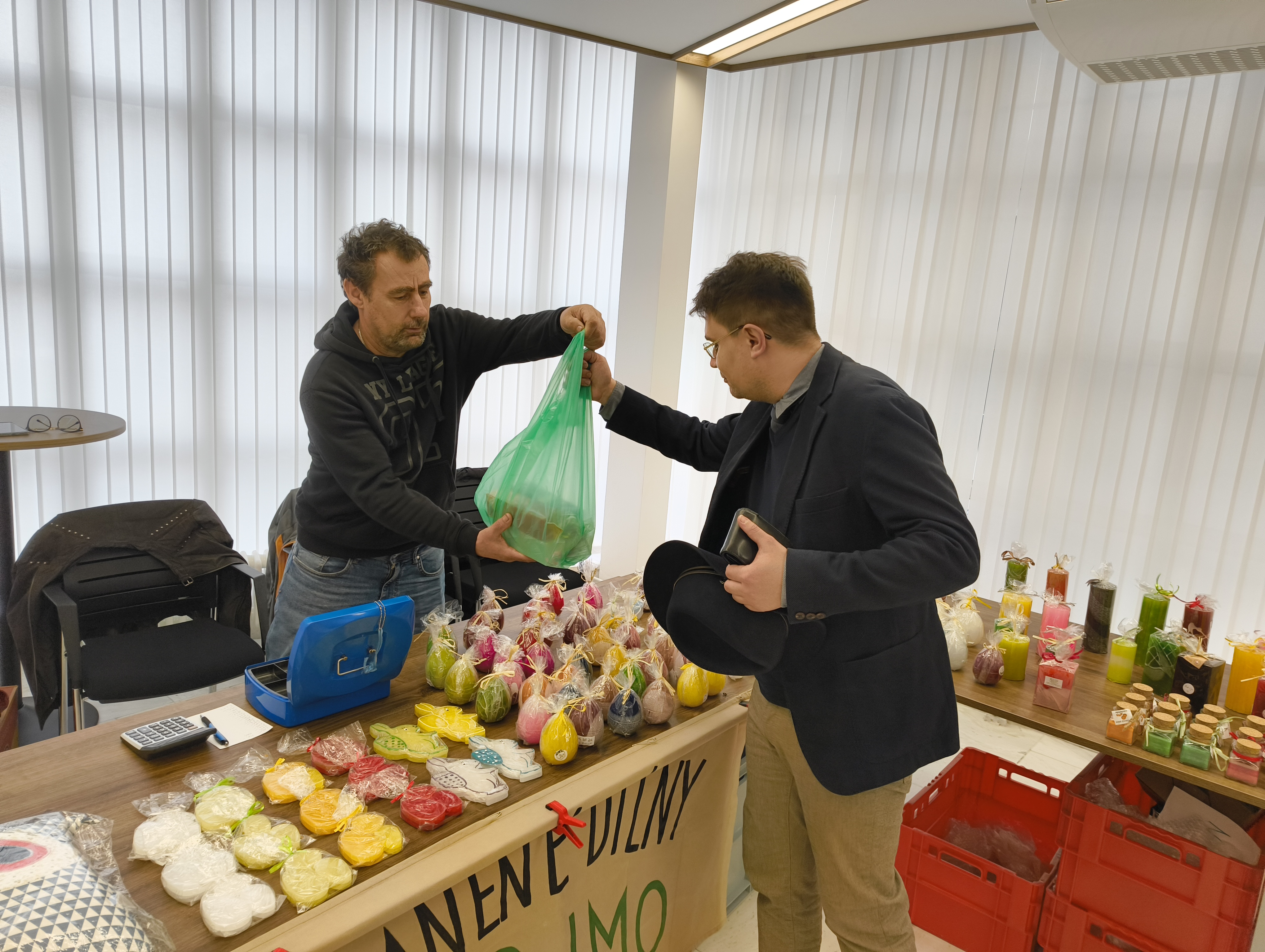 Zájem o látkové hračky, svíčky, polštáře, tašky či pletené výrobky z proutí projevily během dne desítky zaměstnanců a soudců Nejvyššího soudu.